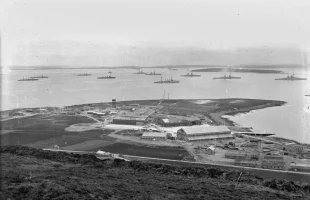 On 5th August 1914 three seaplanes and two aeroplanes were delivered to a field at Nether Scapa on the shores of Scapa Bay. Buildings were quickly erected, but were destroyed in early November by a gale. The air station was rebuilt, but was found to be of little use as too much of the shore was uncovered at low tide, making it difficult to launch seaplanes.