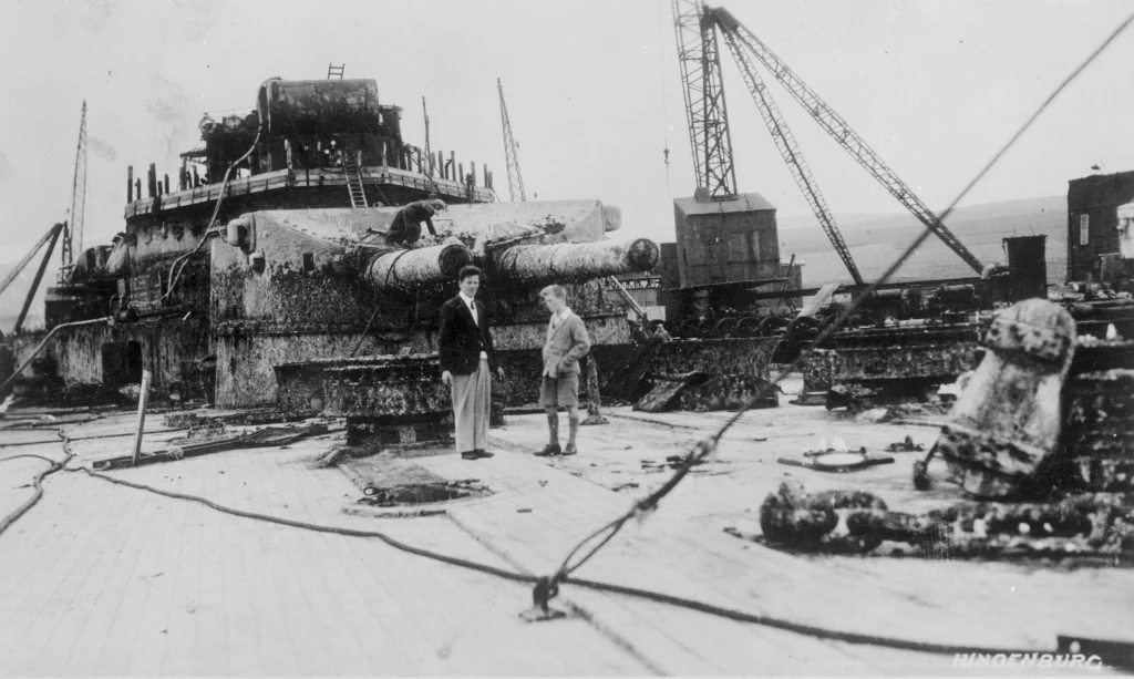 The raised battleships were towed upside down to Rosyth Naval Base to be broken up for scrap. Salvage work was brought to a halt in 1939 by the outbreak of WW2, but was resumed in the 1950s.