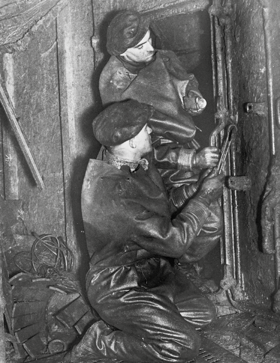 Clawing myself upright again I felt for a torch that I had in my pocket. It did not take me many seconds to switch it on and see where I was, but by this time terror had gripped me and like the rest of the men I was yelling also. Another blast of wind lifted me off my feet and dashed me against a bulkhead. Old pipes and other protruding pieces of metal tore at my suit and gashed my hand and face and I was crying like a child; after all I was still young and life was sweet.